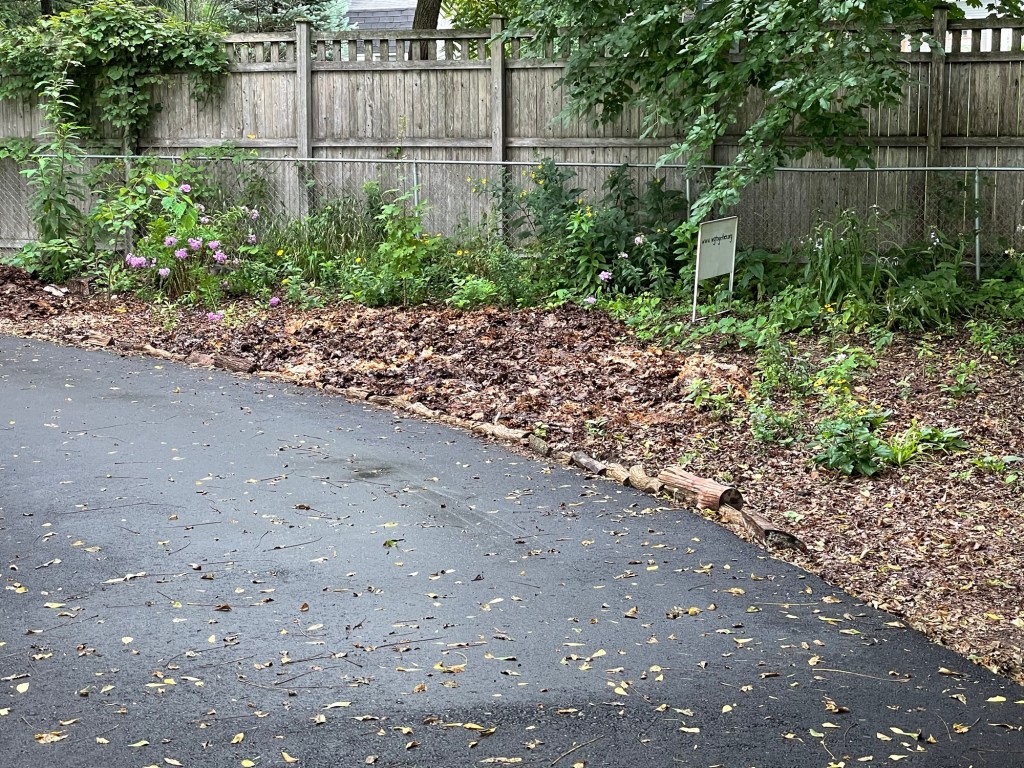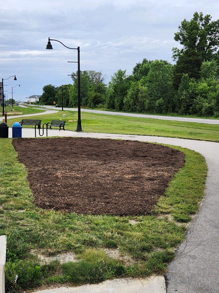 This garden was started in the spring of 2024 and will be planted in the fall of 2024. The garden is located on the Monon Trail in Westfield just north of SR 32. Like most of our gardens we begin by covering the sod with cardboard and then laying woodchips or leaves on top.